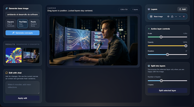 - Would the flow be: Generate image → Chat to refine → Decompose into layers → Edit layers?
