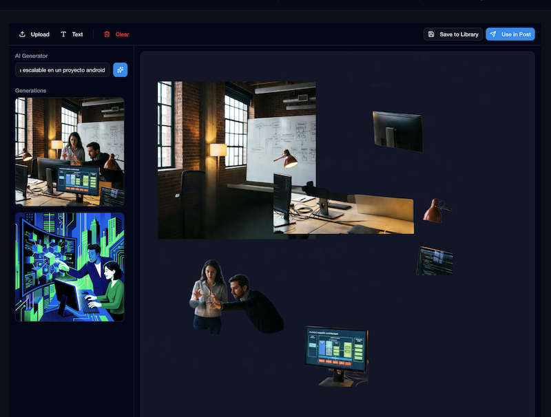 In this case, the questions it asked me were pretty basic, and it didn’t extract much information. At that moment I brought up that I’d like to integrate it with the post composer, being able to save the generated images for later reuse from the Composer. Something I forgot to mention with the others.